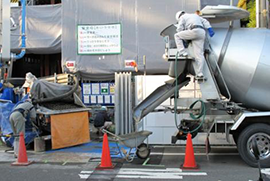 例えば、コンクリート。工事現場でミキサー車から液状のコンクリートが出てくる光景などから、コンクリートが液状にもなりうることは広く知られています。この状態は生コンクリートとも呼ばれていて、水とセメント、さらに骨材と呼ばれる砂や石などが混ぜ合わさった状態です。コンクリートの基本は水とセメントとの反応であり、この反応によって時間とともに凝固していきます。水とセメントはどんな比率でもよいわけではなく、適度な配合バランスがあるのですが、その配合では流動性がないため、運んだり塗り付けたりと作業をするには難しい物性になってしまいます。だからといって水を増やして扱いやすい物性にしようとすると、配合バランスが崩れ、出来上がりのコンクリート自体が劣化しやすくなっていきます。