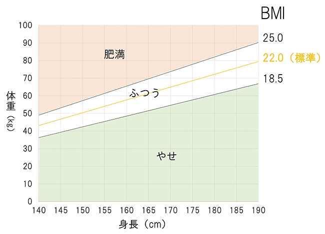 *BMI:Body Mass Indexの略。BMI=体重(kg)÷身長(m)÷身長(m)