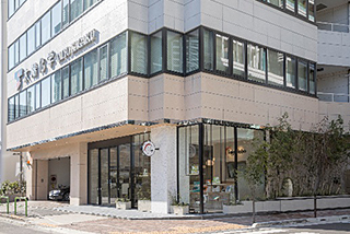 店舗がオープンしたのは、東京都港区浜松町にある、太陽化学の東京本社ビルの一階。JRやゆりかもめからも良く見える立地です。ビジネス街である浜松町の中にありながらナチュラルで緑に囲まれた開放的なスペースは、どなた様にも気軽に入っていただけるような空間を意識して作られています。
